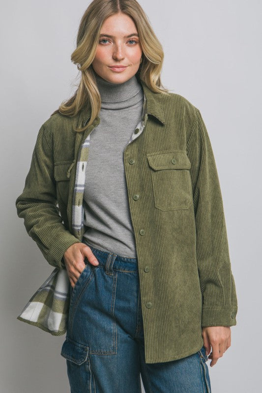 Emma Corduroy Reversible Button Down Jacket S-XL