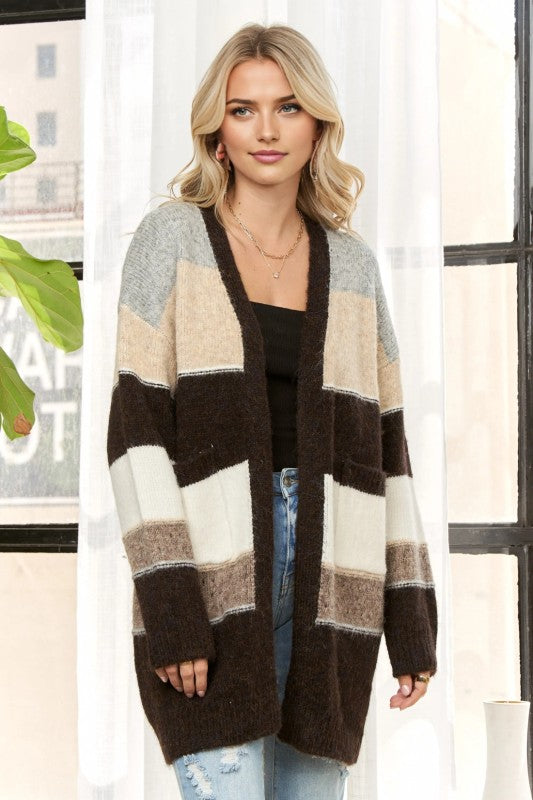 LONG-SLEEVE WITH RIBBED CUFFS OPEN FRONT WITHOUT BUTTONS PATCH POCKETS ON THE FRONT CARDIGAN