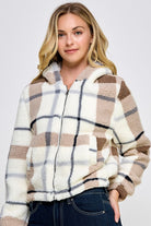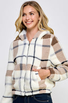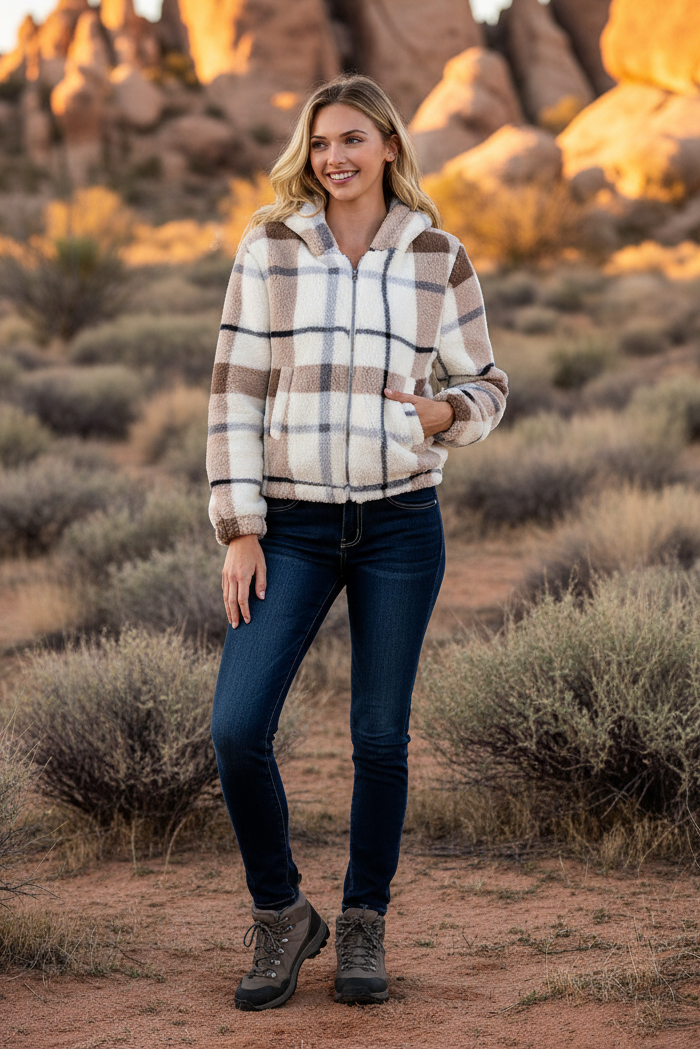 PLAID SHERPA ZIP UP HOODIE JACKET