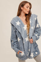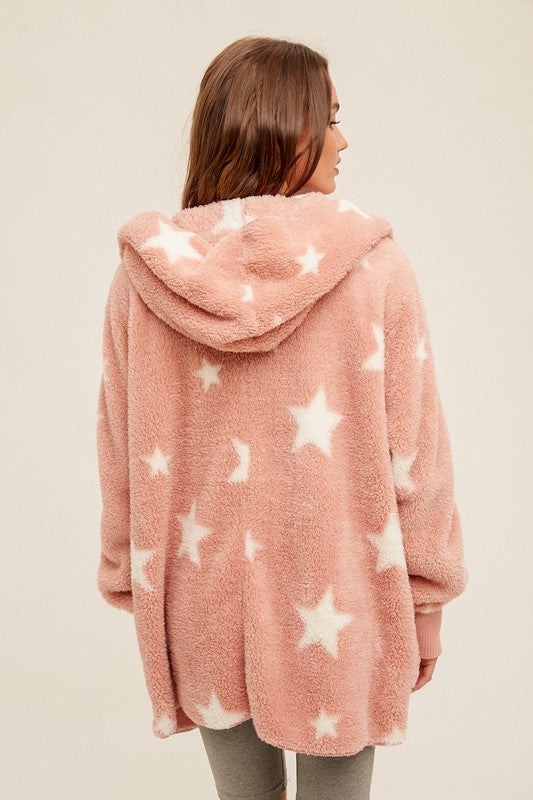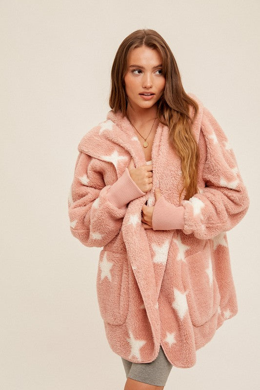 STAR PRINT BOTH SIDE SO SOFT AND COZY FUR OPEN JACKET -100% POLYESTER -CONTRAST:97% ACRYLIC 3% SPANDEX