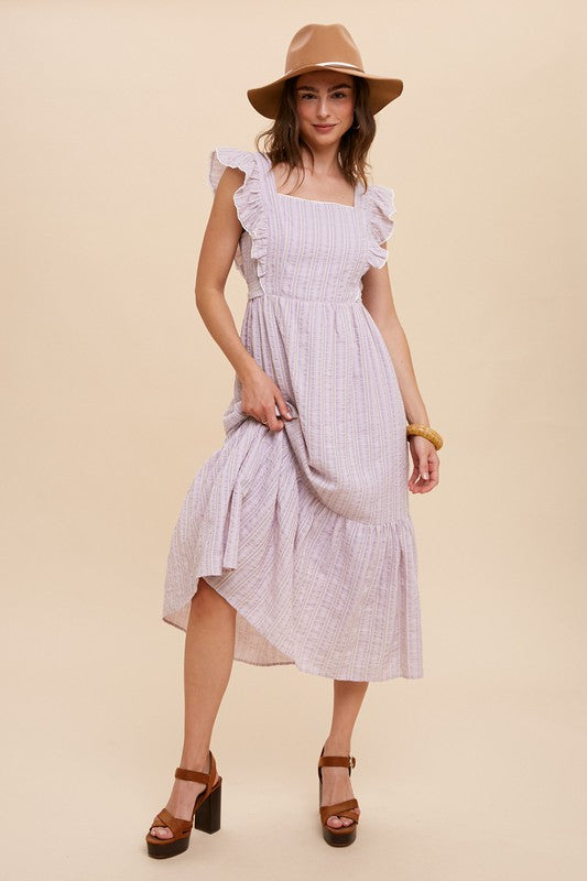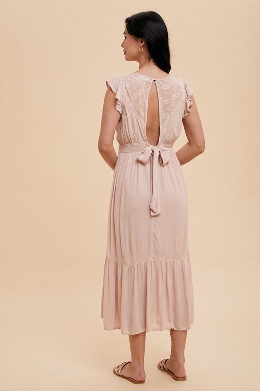 Tina Shirring Bow Tie Midi Dress S-XL