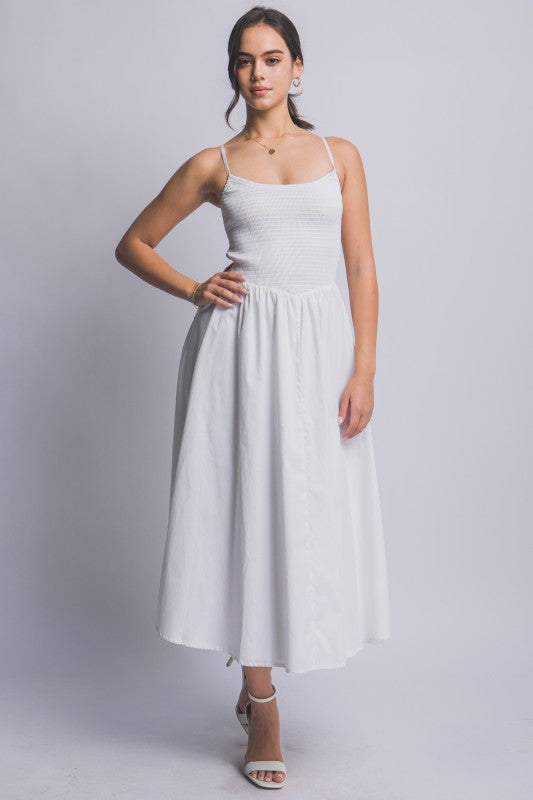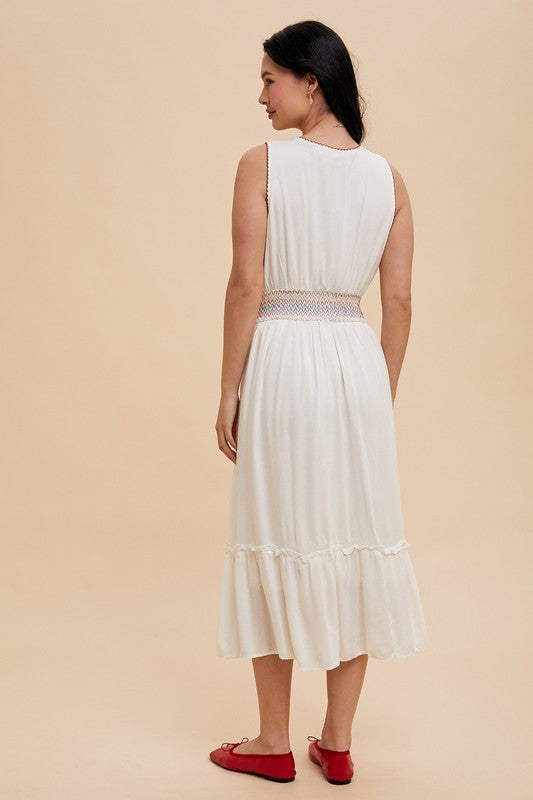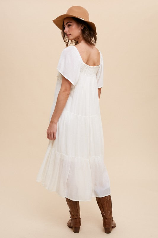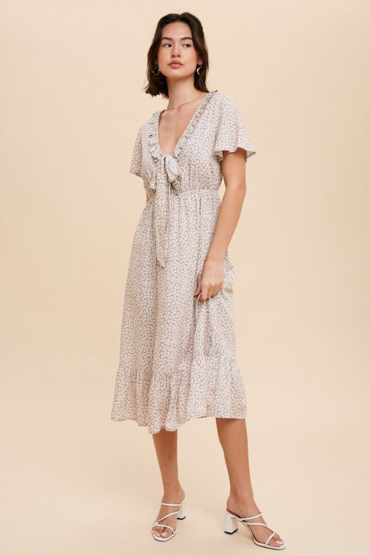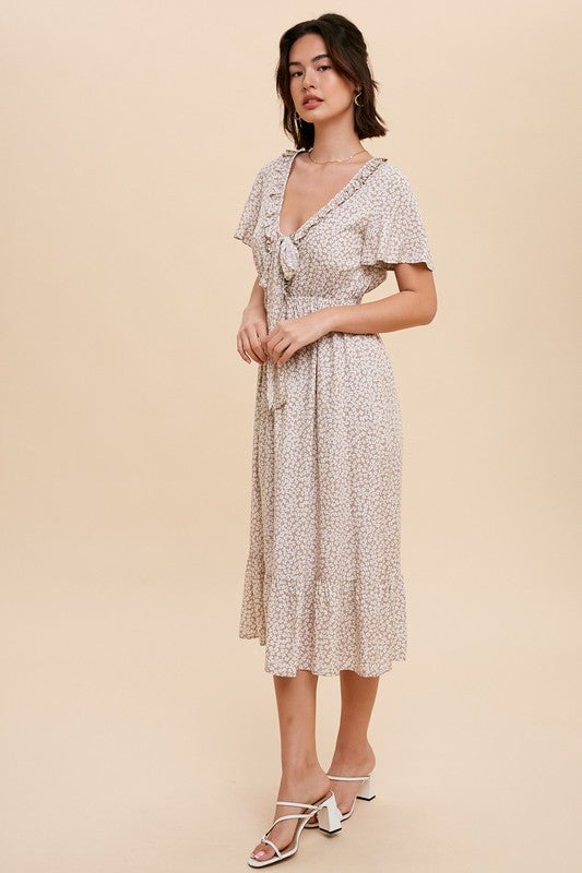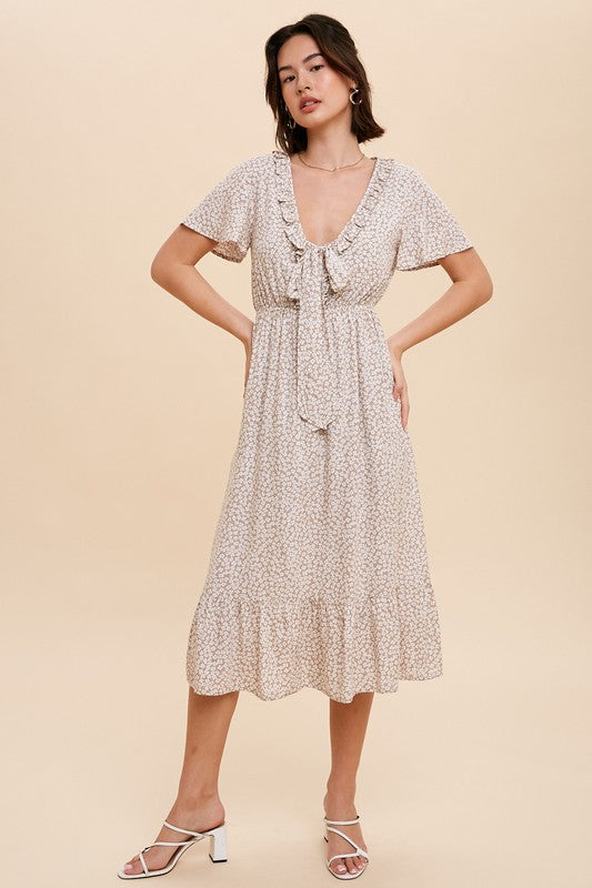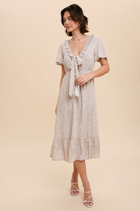 Tina Shirring Bow Tie Midi Dress S-XL