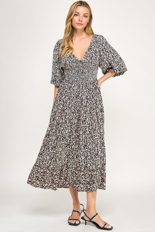 Sally Smocked Floral Maxi Dress