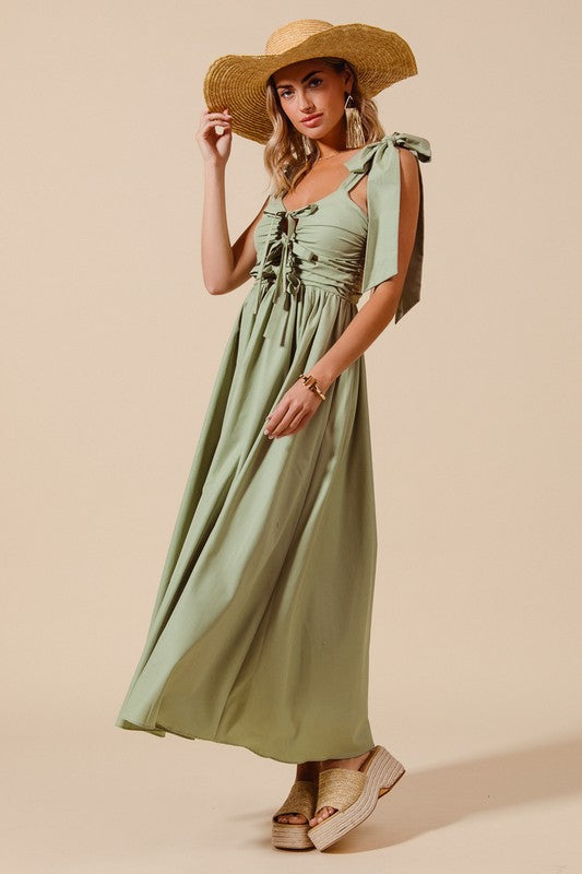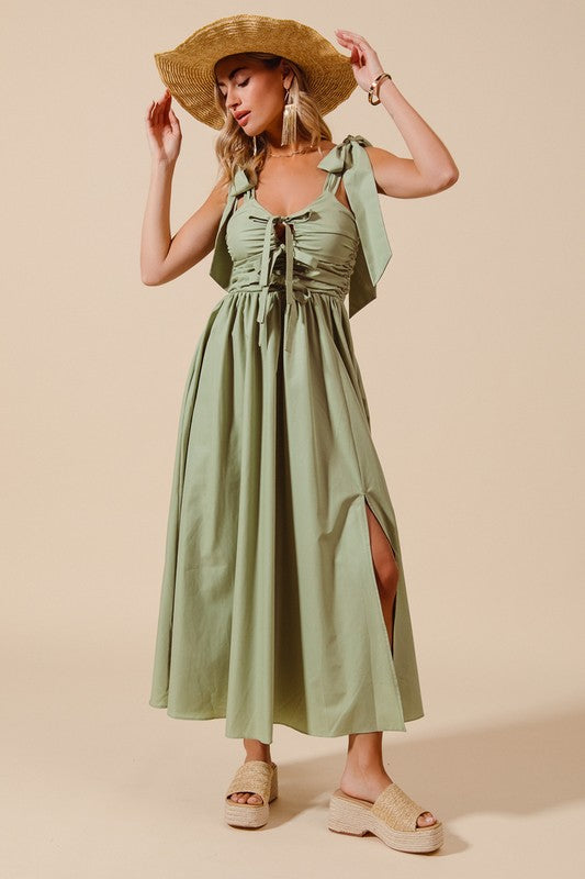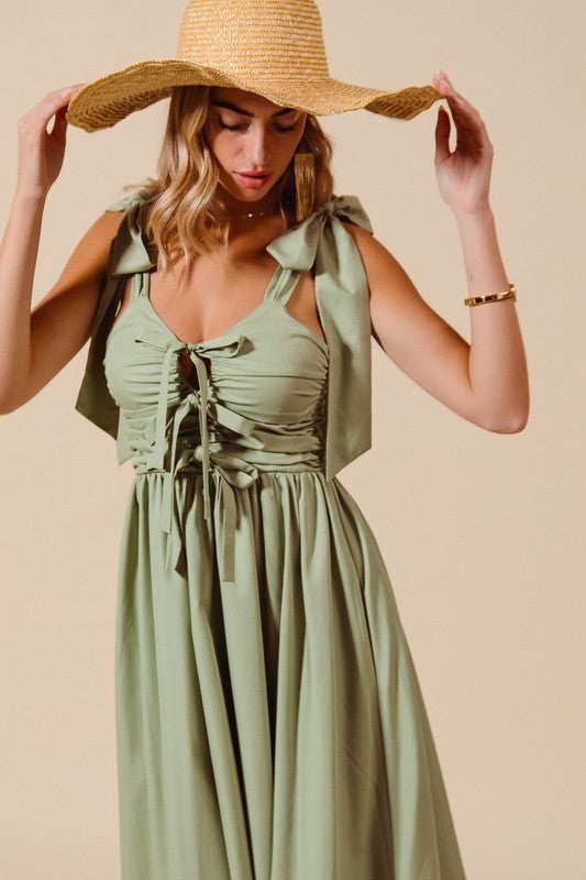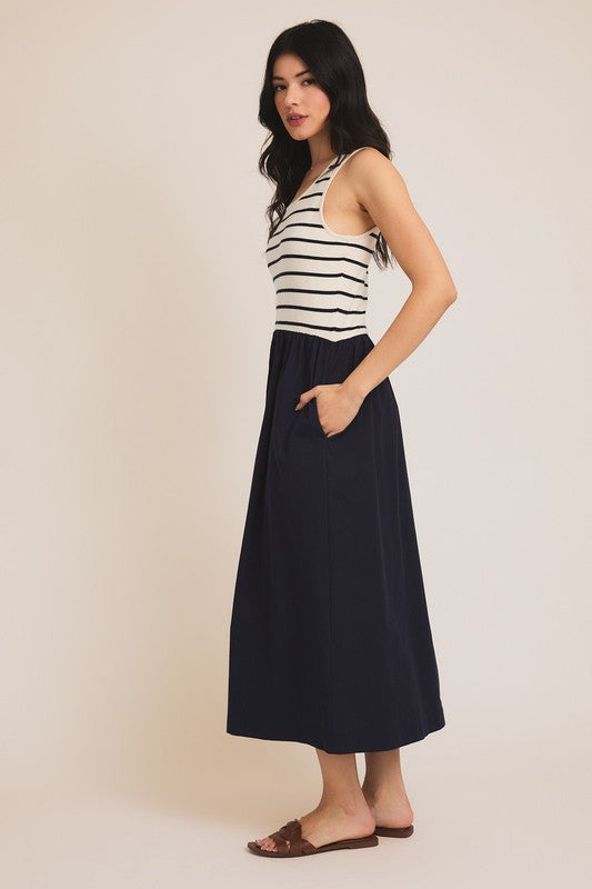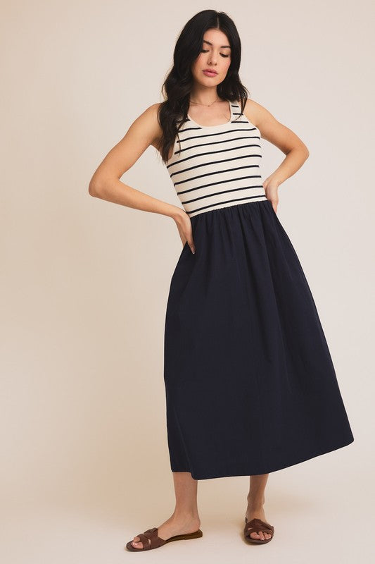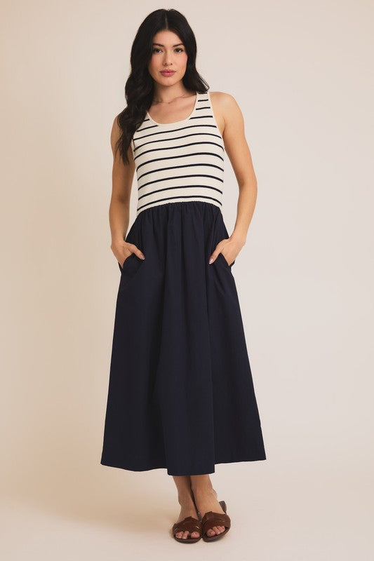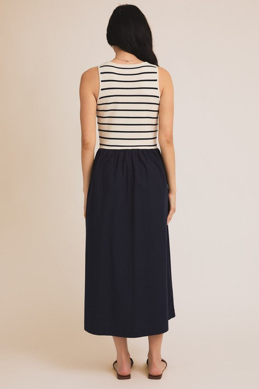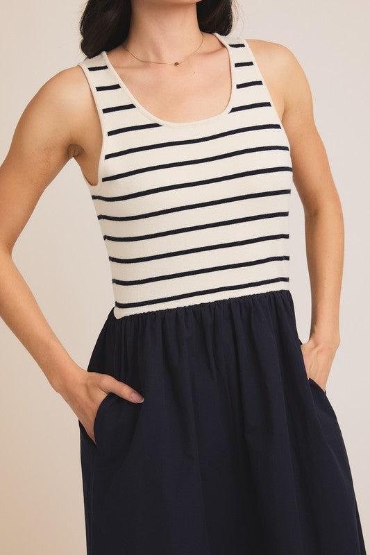 Forest Scooped Neck Sleeveless Knit & Woven Mix Dress
