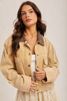 Carly Corduroy Collar Contrast Twill Crop Jacket
