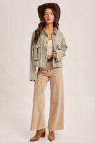 CORDUROY COLLAR CONTRAST TWILL CROP JACKET