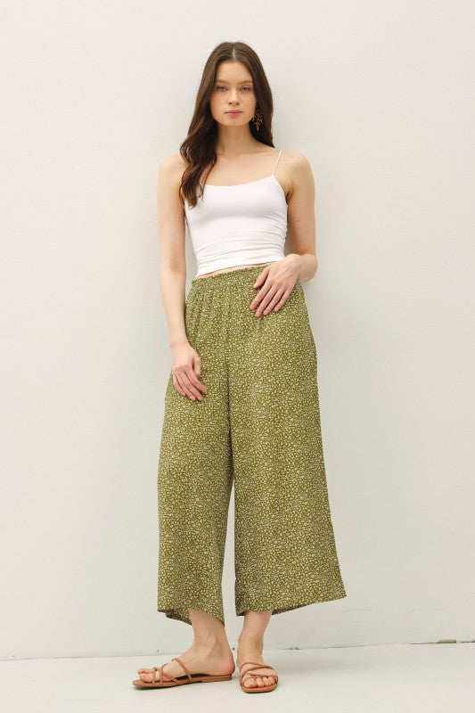 Henry Ditsy Printed Crop Pants W/ Elastic Waistband