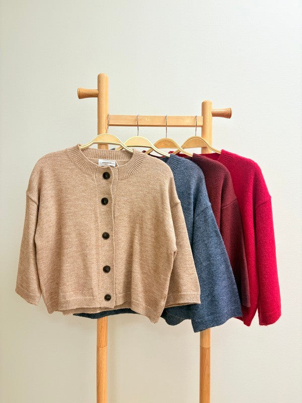 HALF SLEEVE BUTTON DOWN KNIT CARDIGAN - LIGHT WEIGHT SOFT KNIT FABRIC - ROUND CREW NECKLINE - BUTTON DOWN FRONT - HALF LENGTH SLEEVE - RELAXED FIT - BUTTONS CHANGE (6 TO 5)