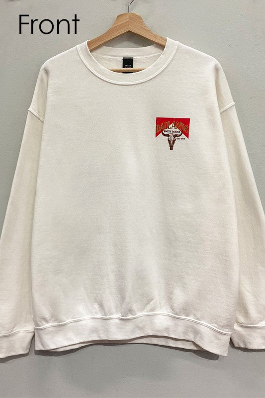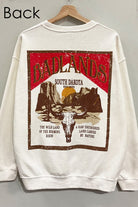 LONG SLEEVE GARMENT-DYED/CREW-NECK "BADLANDS SOUTH DAKOTA" WESTERN OVERSIZED GRAPHIC FRONT AND BACK PRINT SWEATSHIRT TOP