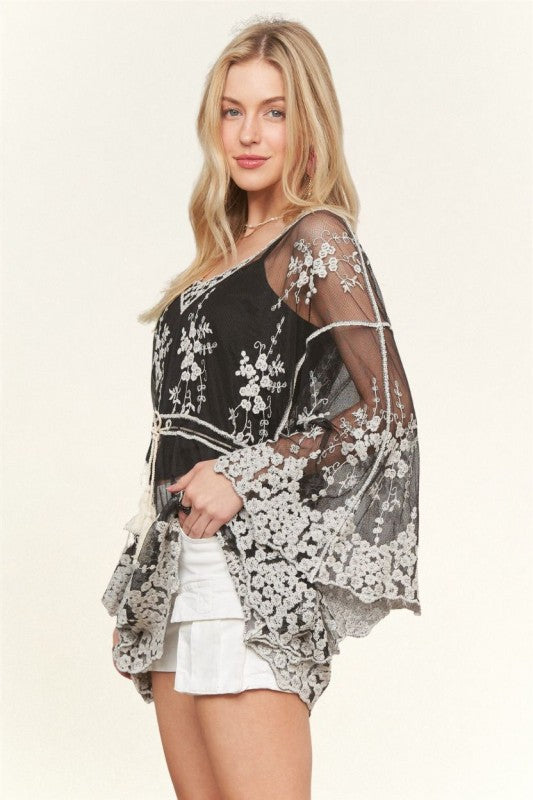 KIMONO CARDIGAN, EMBROIDERY, FLORAL EMBROIDERY, BOHO, SPRING, SUMMER