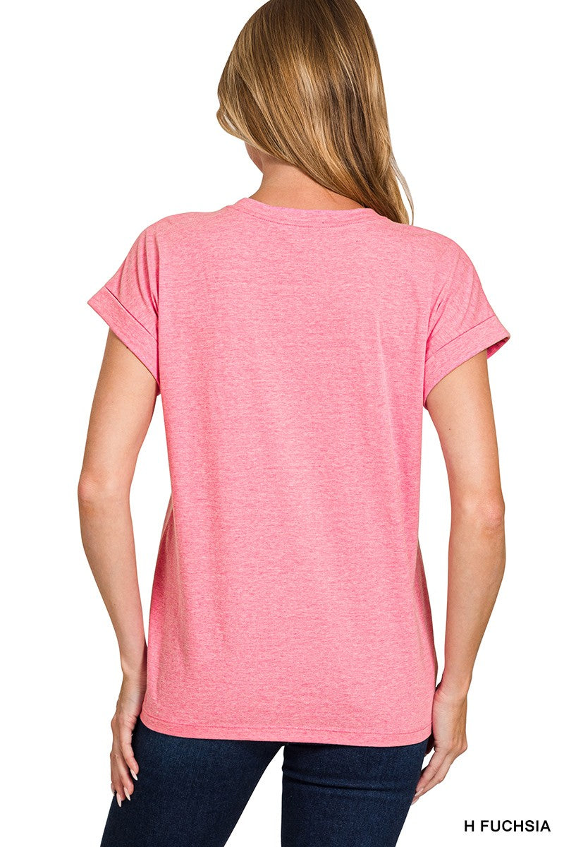 COTTON FOLDED SLEEVE T-SHIRT