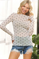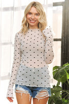 - Light-weight soft small heart flocking mesh fabric used- High neck design top with slim fit - Long sleeve with ruffle band- NO LINING (bralette is not including)