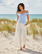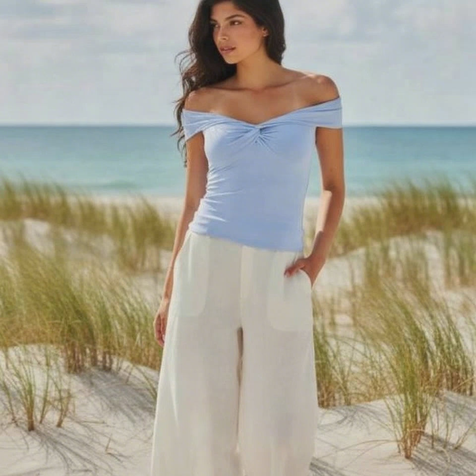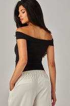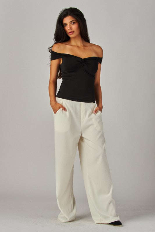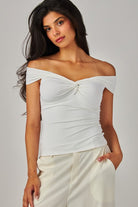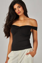 This is an off-the-shoulder top with a twist front and double-layer fabric for a supportive fit. It's made with our luxe, ultra flattering fabric coveted for its smoothing effect and second-skin feel. Nothing more essential.