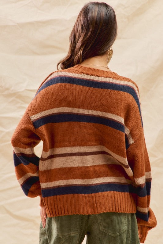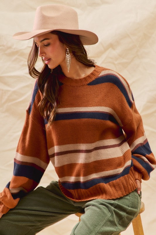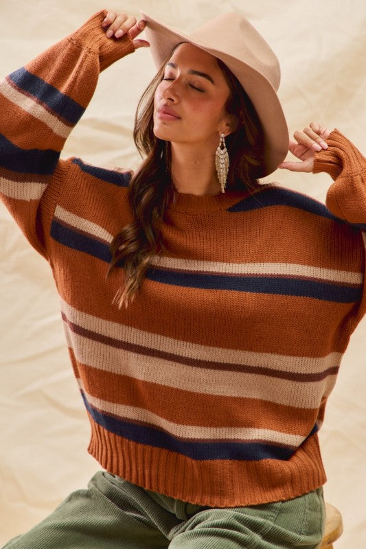 MULTI COLOR STRIPE CREW NECK SWEATER TOP