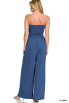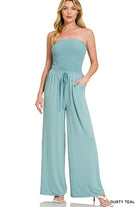 SMOCKED TUBE TOP JUMPSUIT WITH POCKET