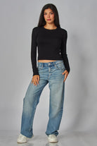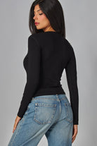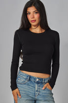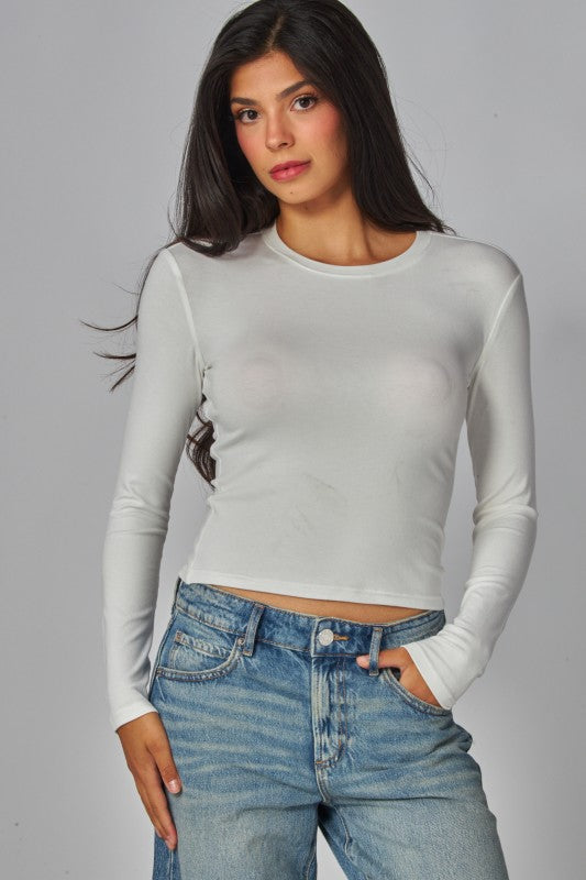 This sleek tee is hugging in all the right places! Features crewneck, long sleeves super soft fine ribbed knit, and close-to-body fit.Fabric Contents95% Cotton, 5% Spandex
