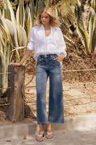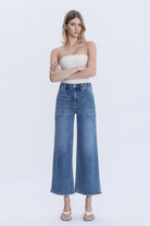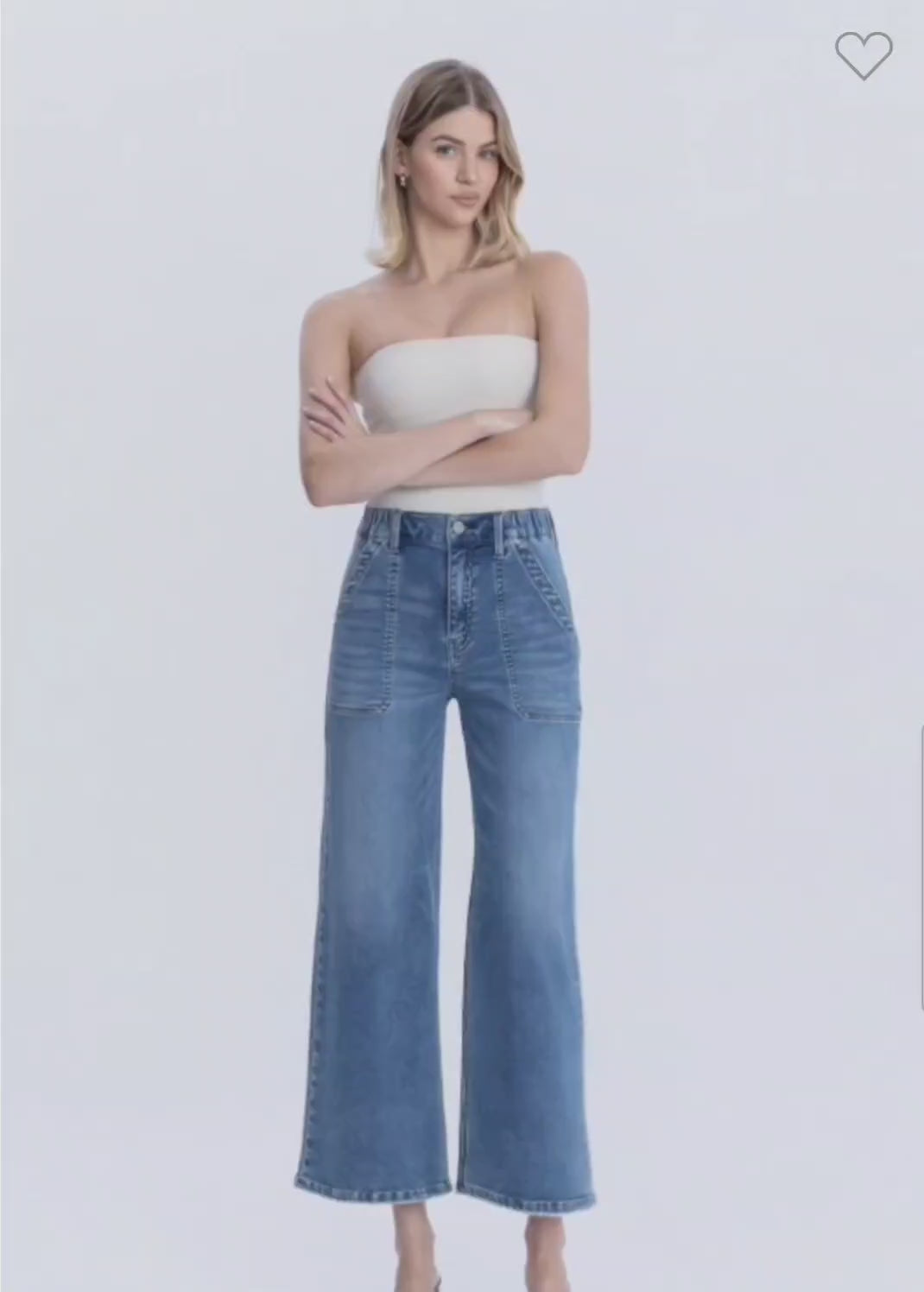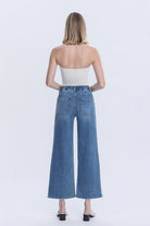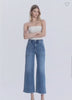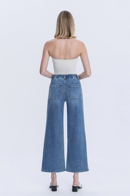 HIGH RISE ELASTIC WAISTBAND ANKLE BAGGY WIDE JEANS