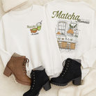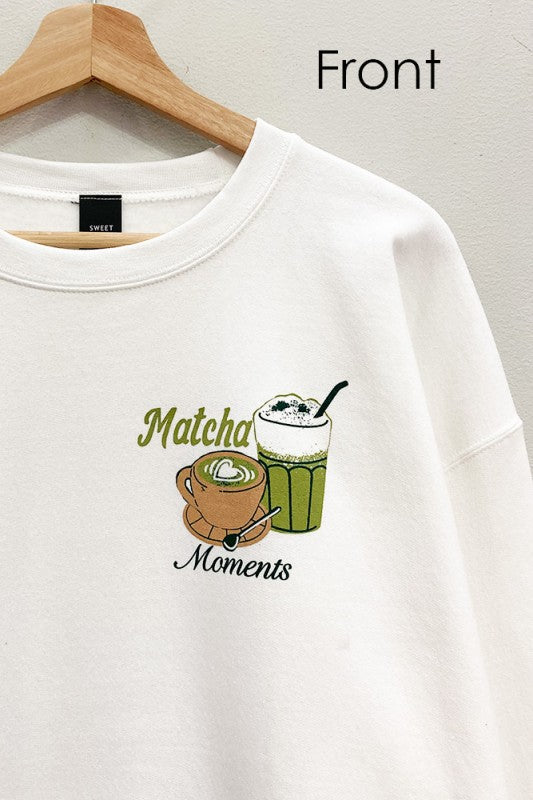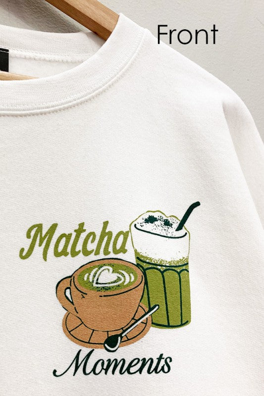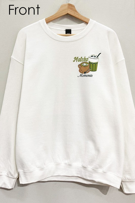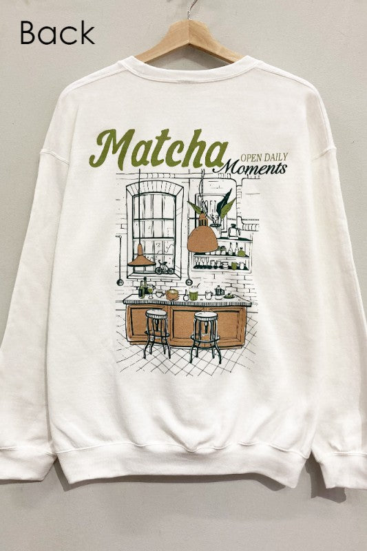 LONG SLEEVE CREW-NECK FRONT AND BACK PRINT "MATCHA MOMENTS CAFE" OVERSIZED GRAPHIC SWEATSHIRTFabric Contents50% COTTON 50% POLYESTER