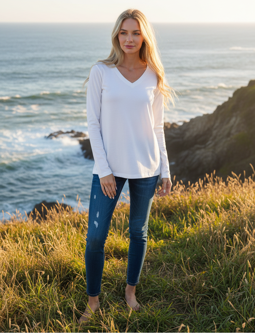 COTTON V-NECK  LONG SLEEVE T-SHIRTS (GOOD QUALITY MISSY COTTON T-SHIRTS)