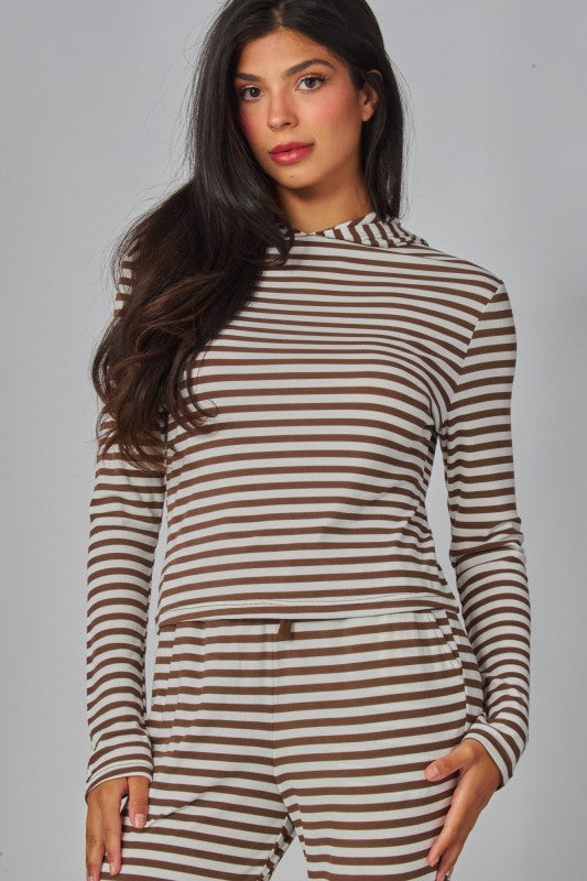 Stripe Mist Hoodie. A sheer lightweight jersey hooded top with stripe.