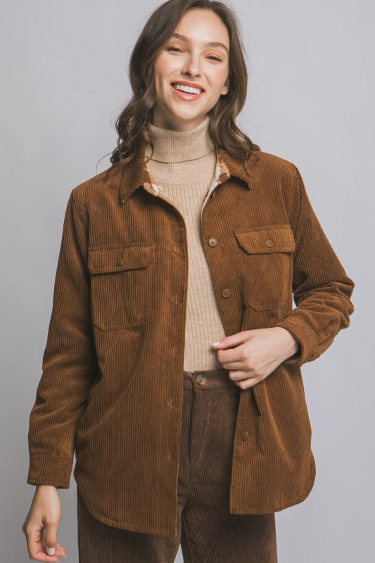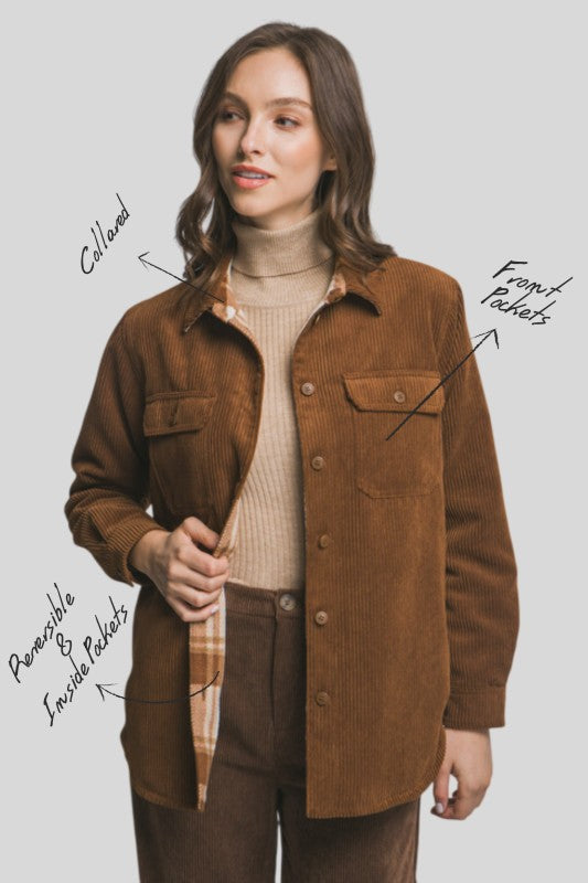 Emma Corduroy Reversible Button Down Jacket S-XL