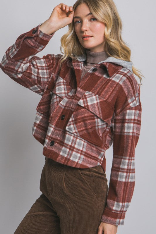 Lucy Plaid Shacket With Detachable Hood