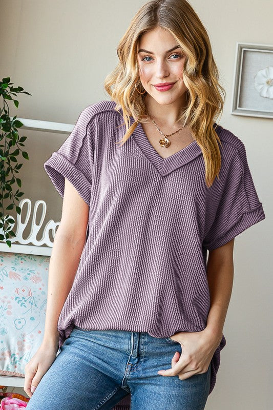 Meagan Loose Fit Knit Top W/ Outseam Overlock