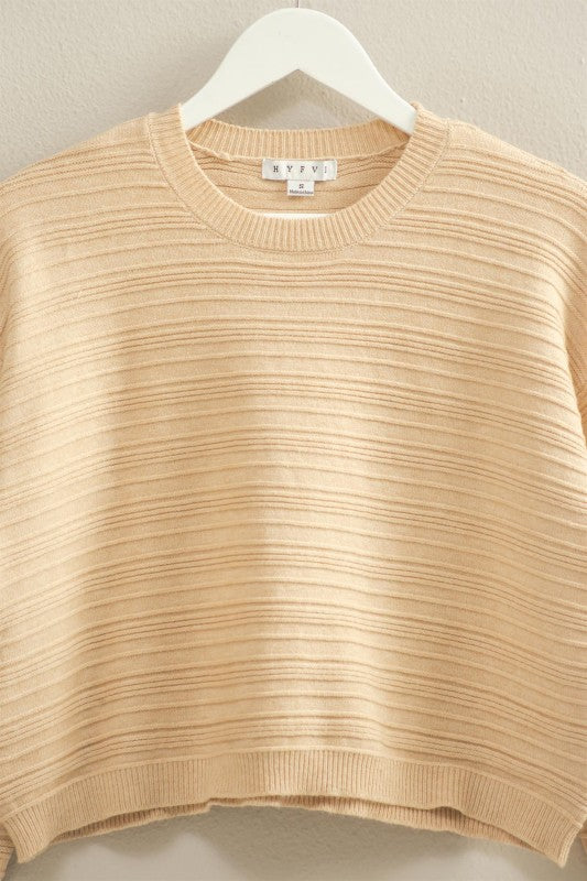Elevate any look with this off-the-shoulder ribbed knit top featuring subtle stripes and long sleeves. Designed for comfortable wear and effortless style, it's perfect for casual outings and pairs beautifully with denim or skirts. Ideal for fall layering, offering a chic blend of texture and warmth.