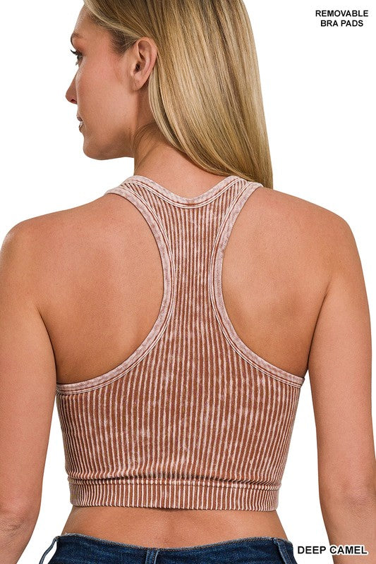 STONE WASHED SEAMLESS RACERBACK TANK TOP W BRA PAD