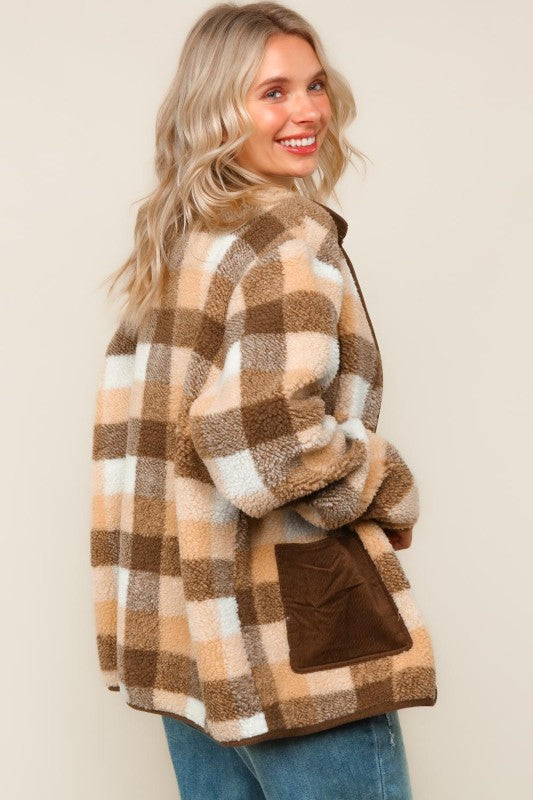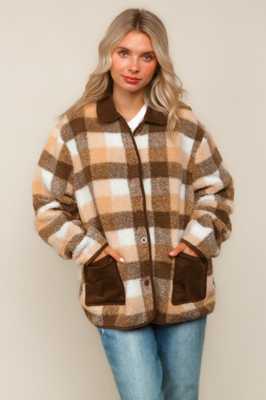 COLLARED BUTTON DOWN LONG SLEEVE SOLID CORDUROY PLAID CHECK SHERPA FLEECE COLOR BLOCK LOOSE FIT OVERSIZED JACKET WITH POCKET