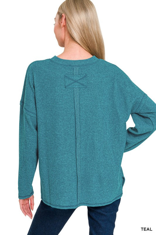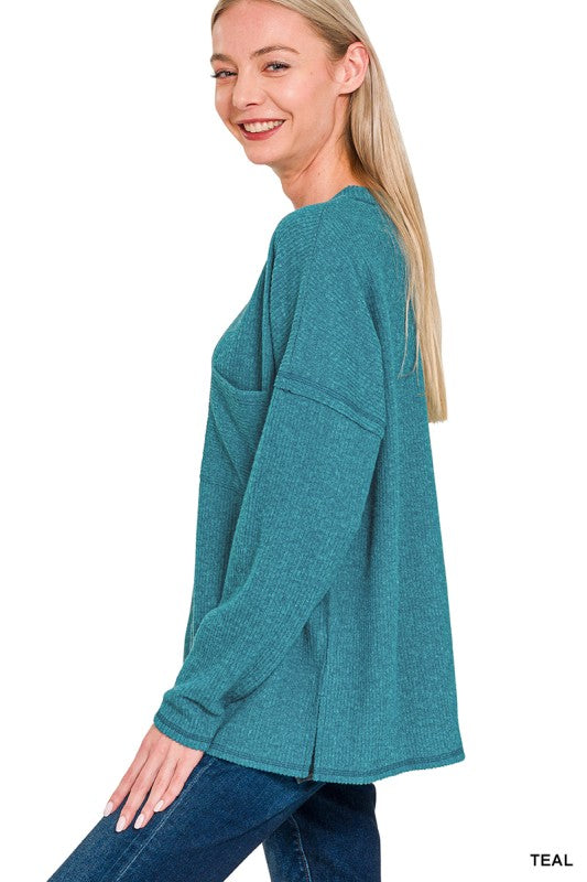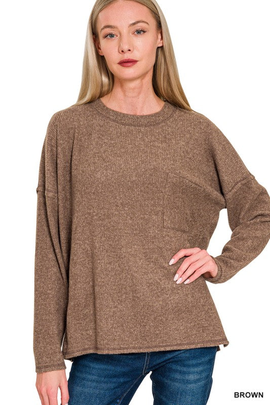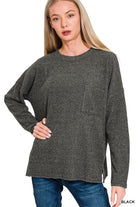 RIBBED BRUSHED MELANGE HACCI SWEATER WITH A POCKET