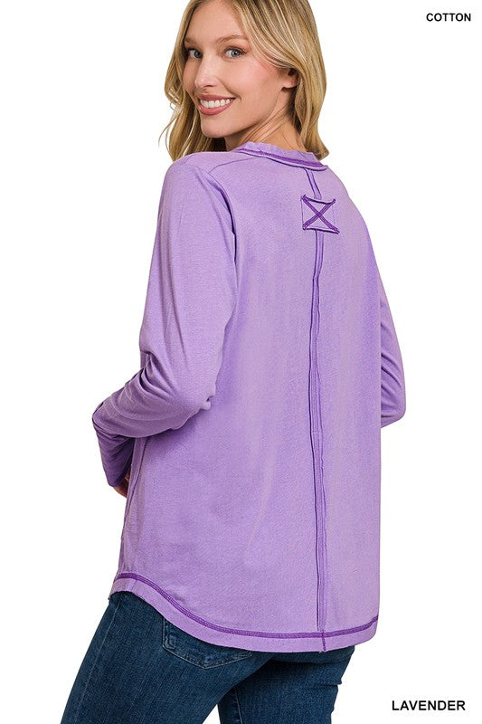 Tori Thumb Hole Cuffs Button Closure Long Sleeve Top