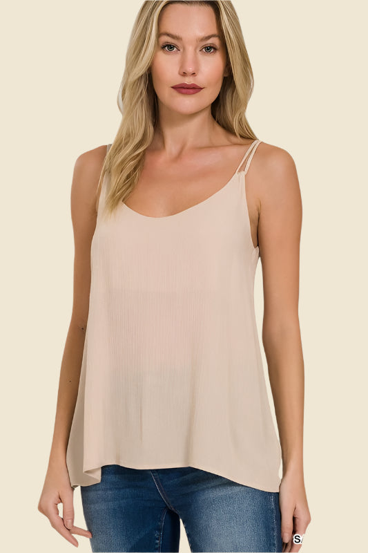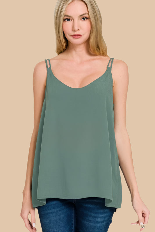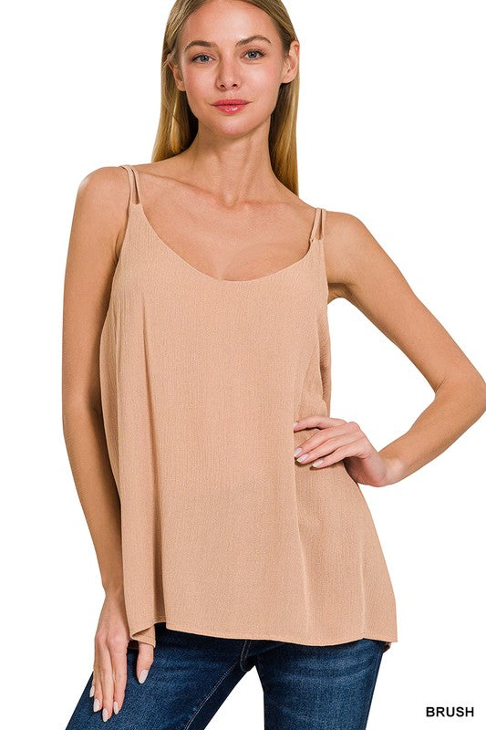 WENDY WOVEN CRINKLE DOUBLE SPAGHETTI STRAP V-NECK CAMI