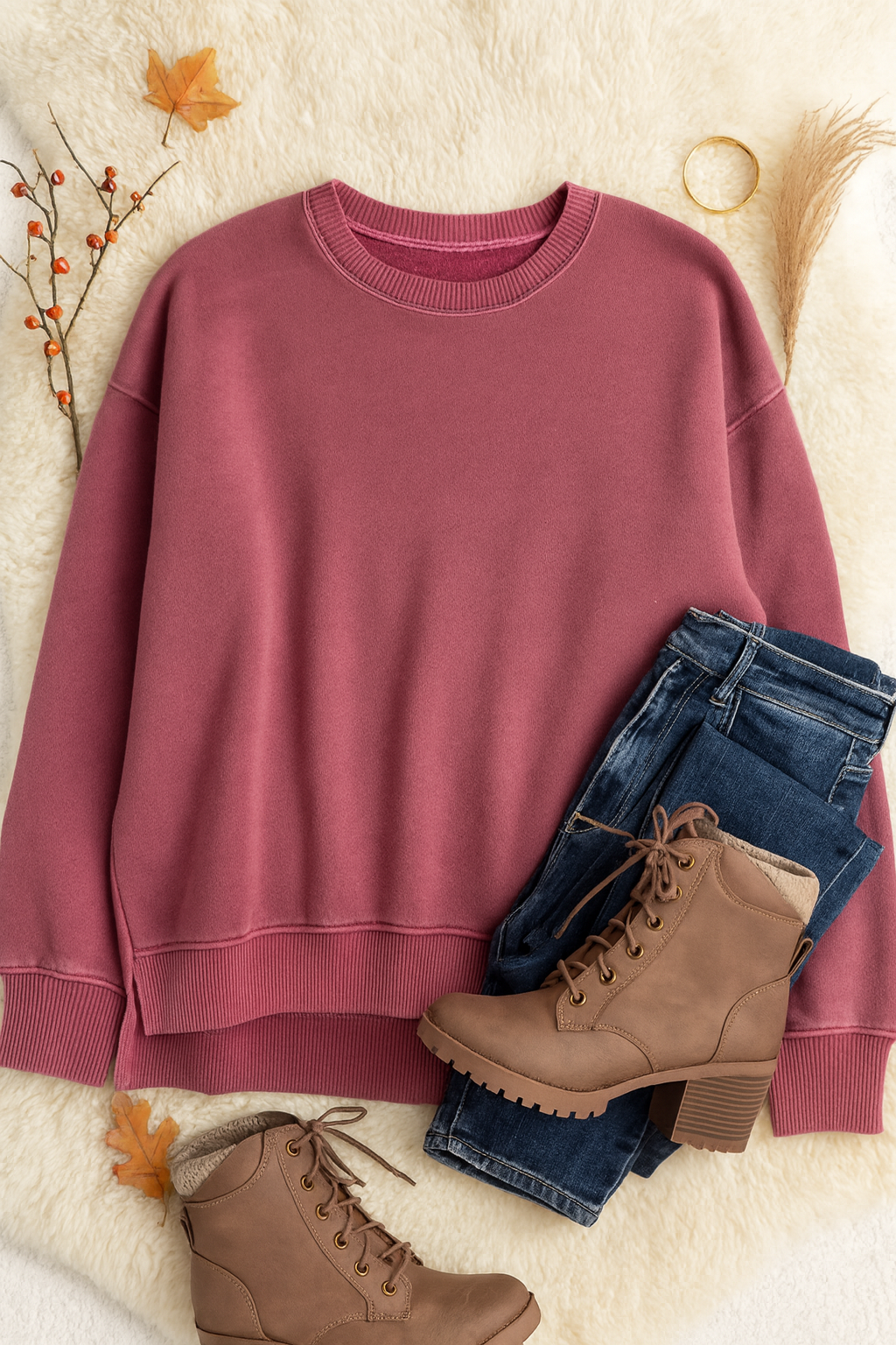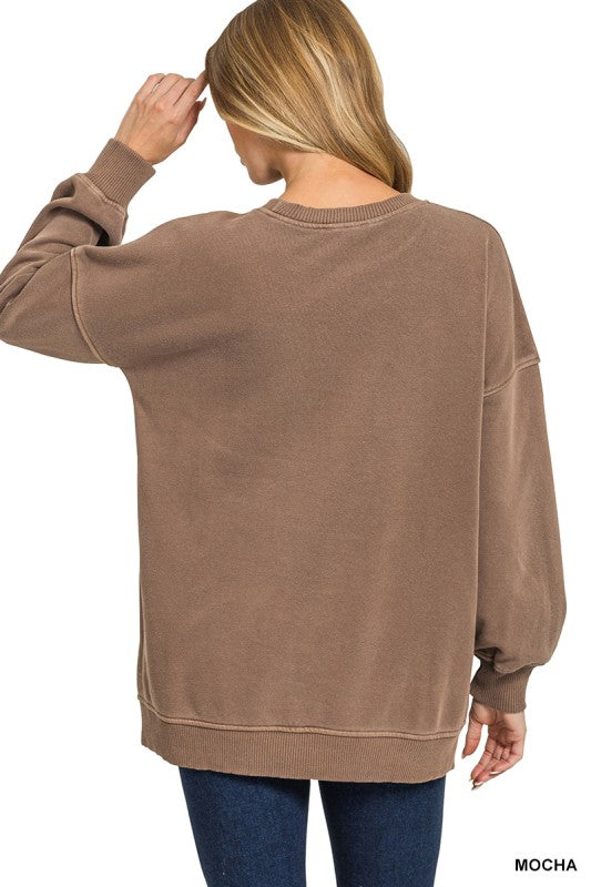 PIGMENT DYE FLEECE HI-LOW HEM PULLOVER WITH POCKET