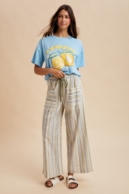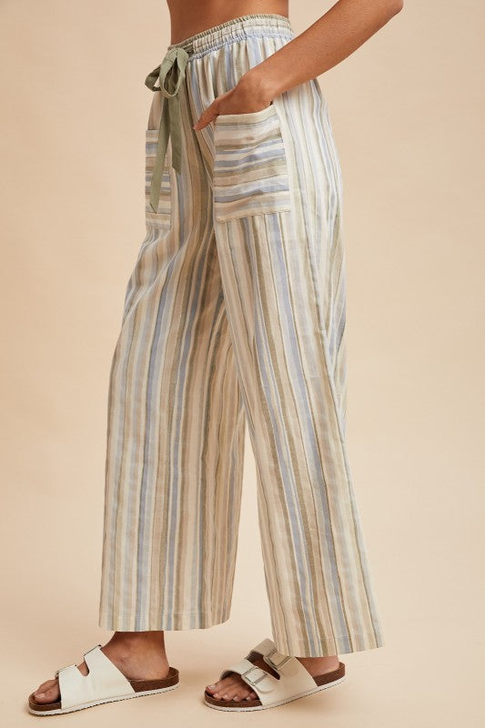 MULTI STRIPE PATCH POCKET WIDE LEG PANTS