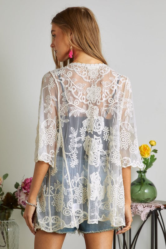 3/4 SLEEVES EMBROIDERED LACE CARDIGAN