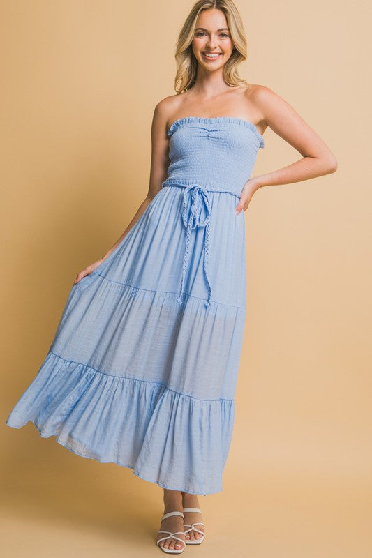 You'll instantly be feeling those summer vibes in the Smocked Strapless