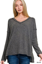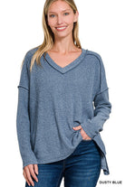Bettie Brushed Ribbed Hacci Drop Shoulder V-neck Sweater S-XL