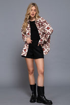 LONG SLEEVE PRINTED FLEECE SHACKETFabric ContentsFABRIC: PRINTED FLEECE 100% POLYESTER