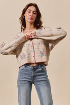 FLORAL PATTERNED LONG SLEEVE BUTTON FRONT SWEATER CARDIGAN