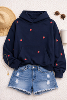 FLEECE RELAXED FIT PULLOVER HOODIE WITH STRAWBERRY ALL OVER EMBROIDERY
