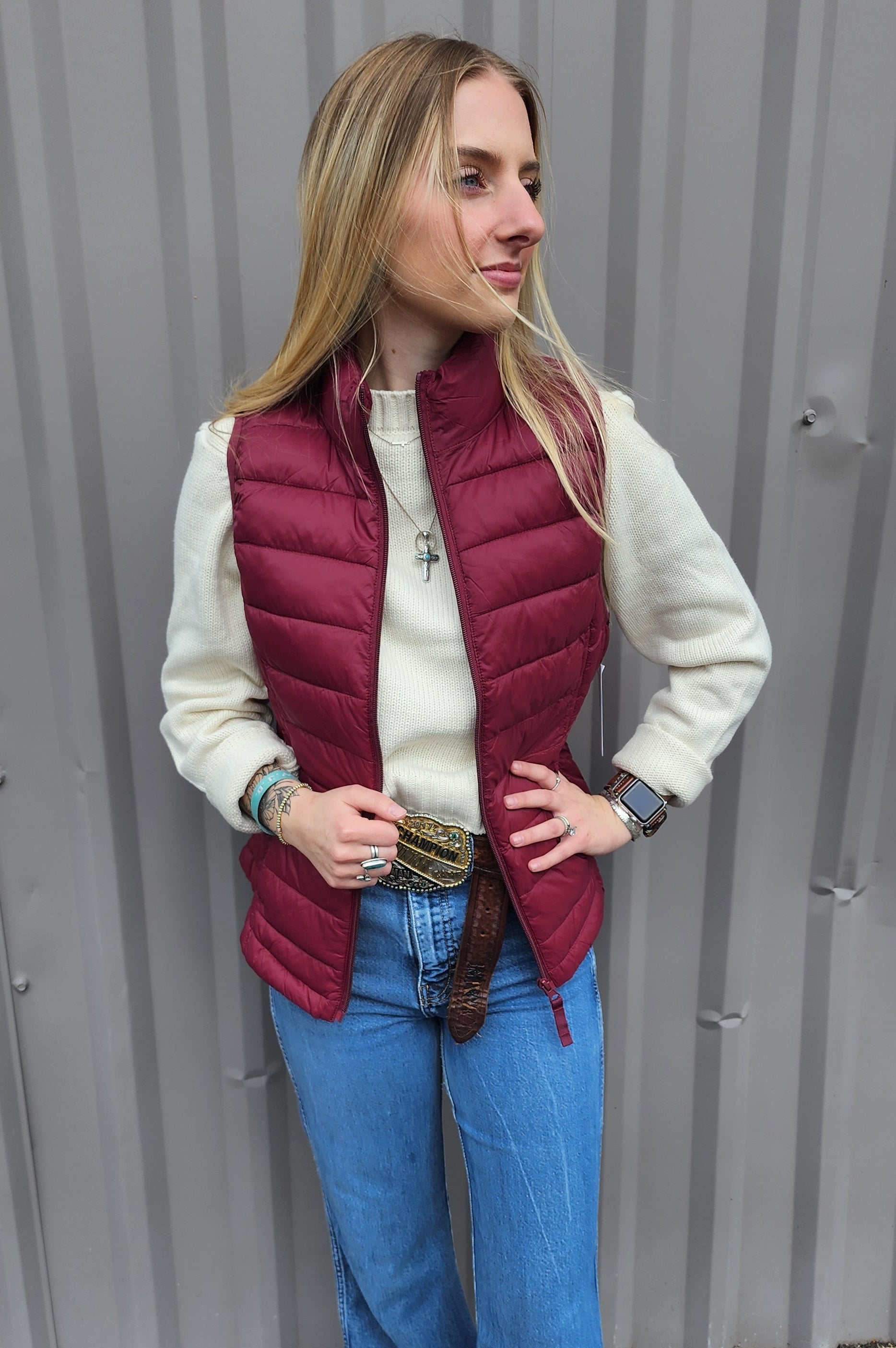 Aztec Printed Wool Like Jacquard Puffer Vest S-XL