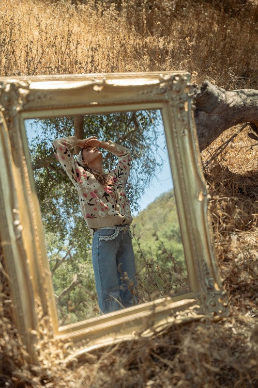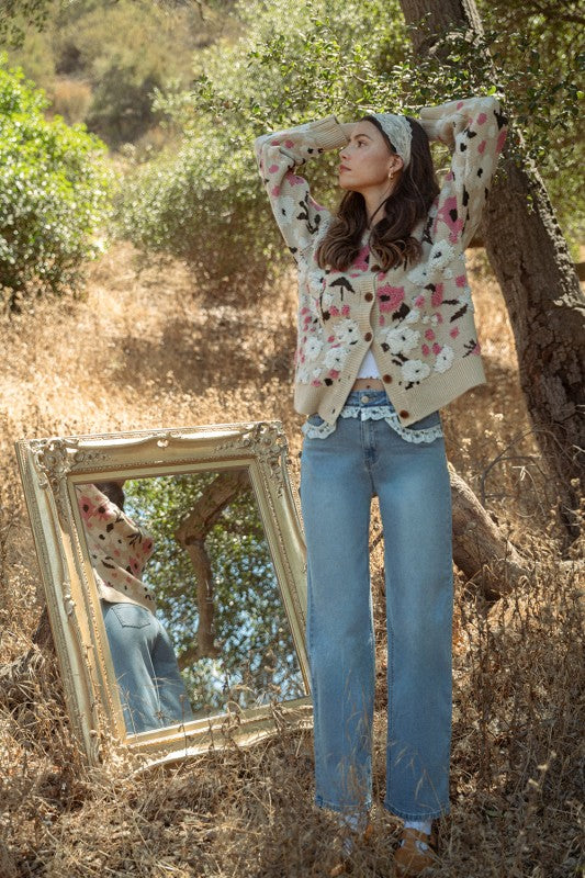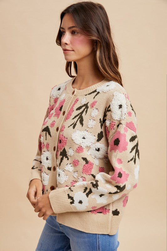 Boucle Flower Pattern Sweater Cardigan S-XL