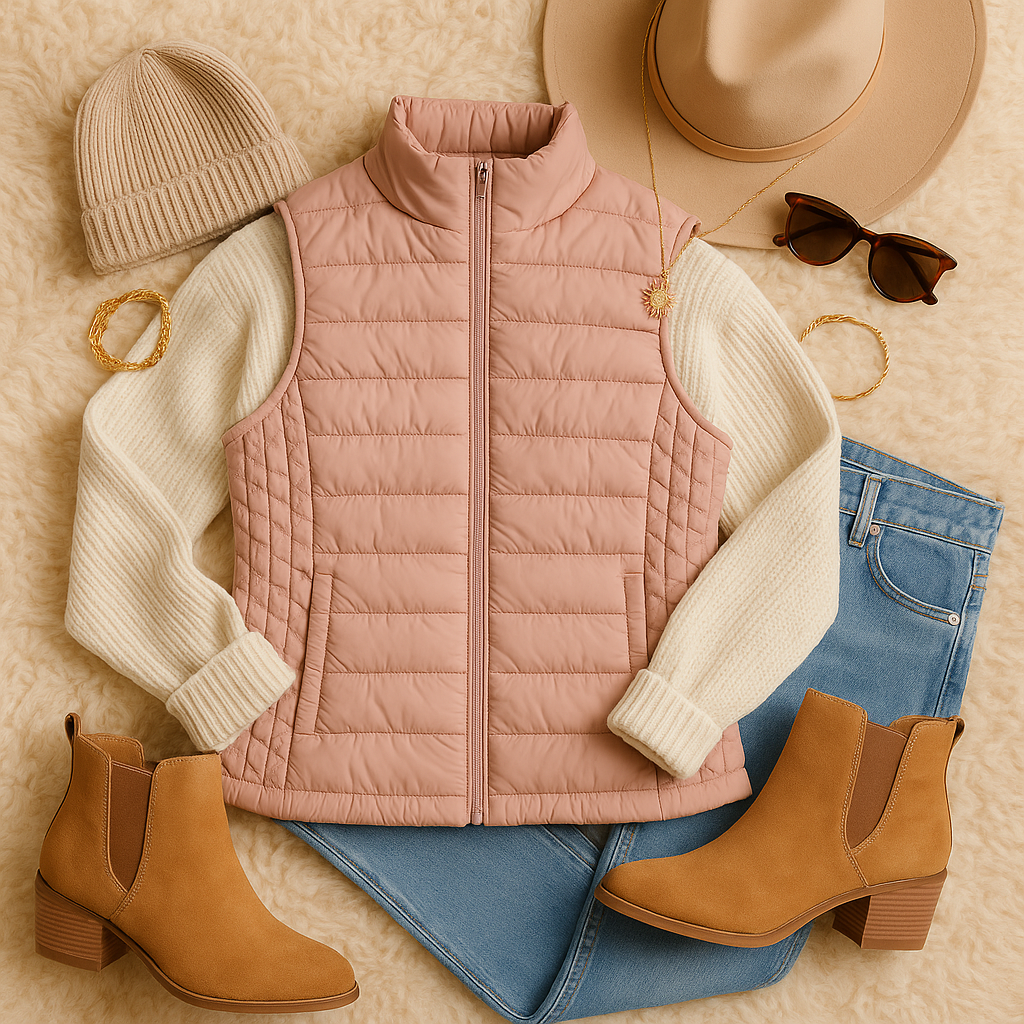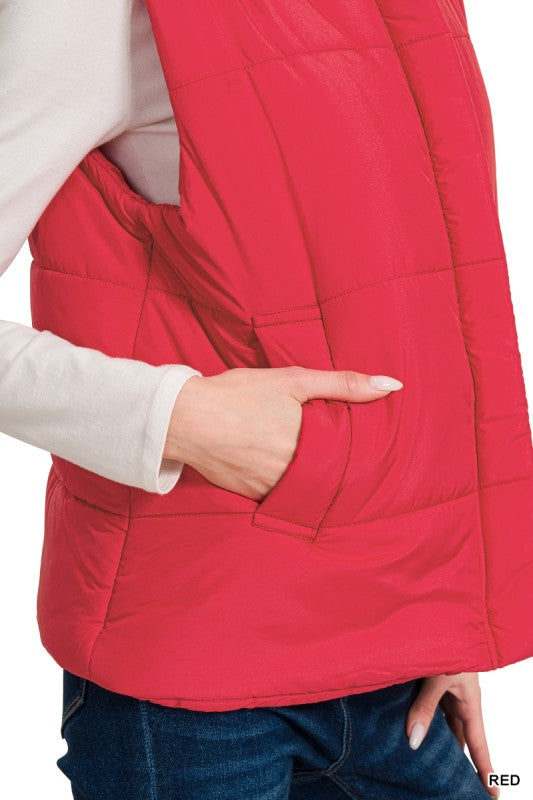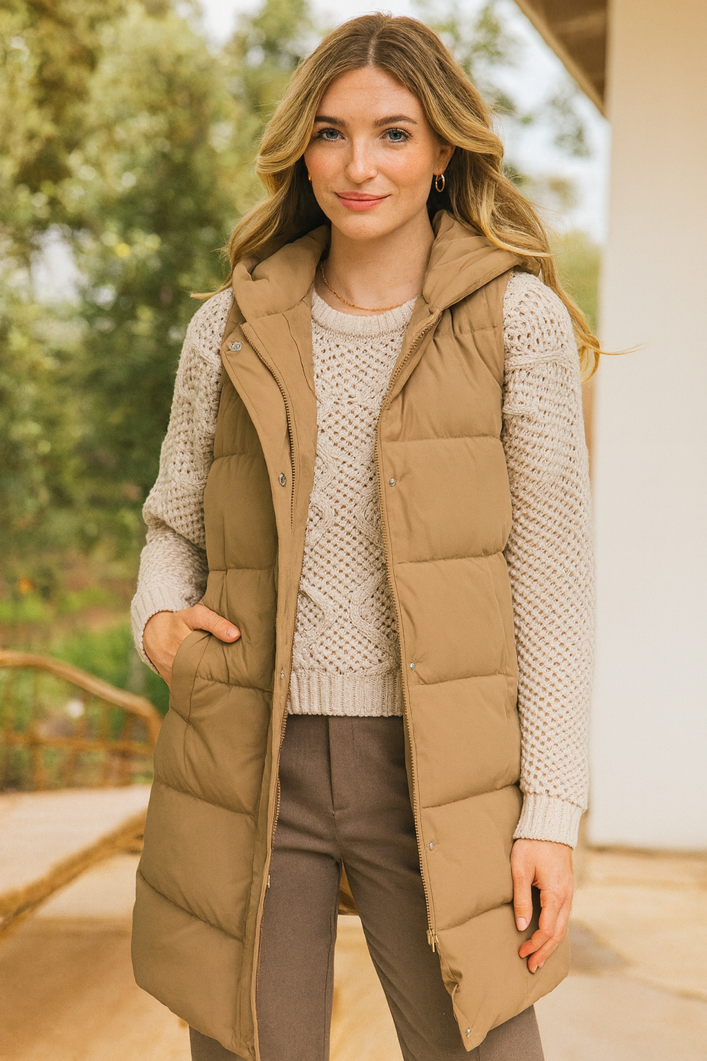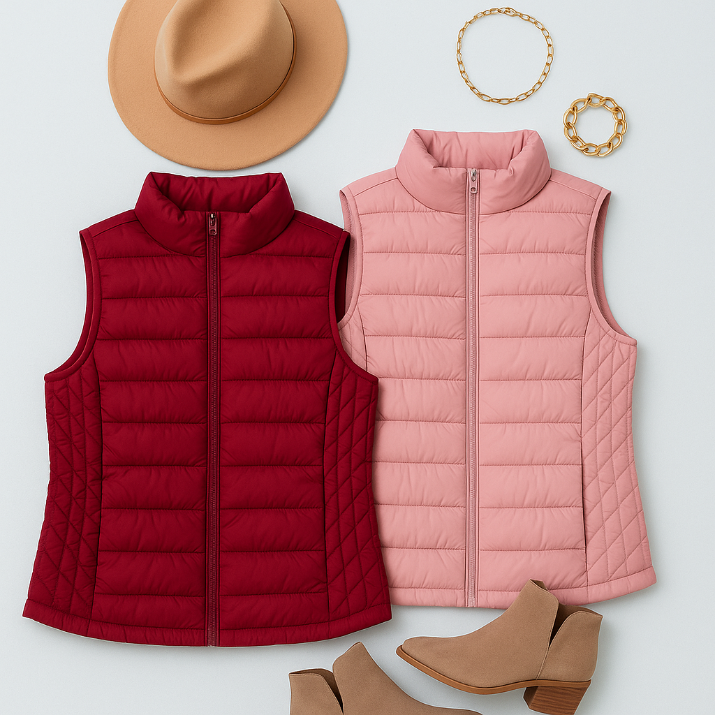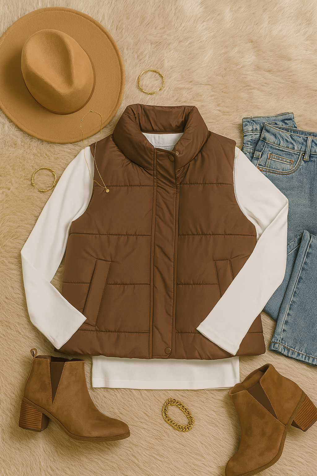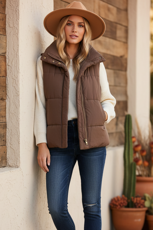ELYSIA SUEDE PIPING DETAIL RIB QUILTED PADDING VEST S-2XL