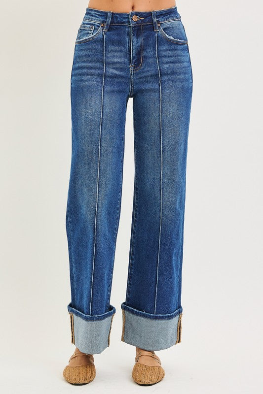 HIGH RISE ANKLE WIDE TURN UP JEANS