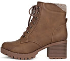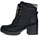Chunky high heel combat boot.