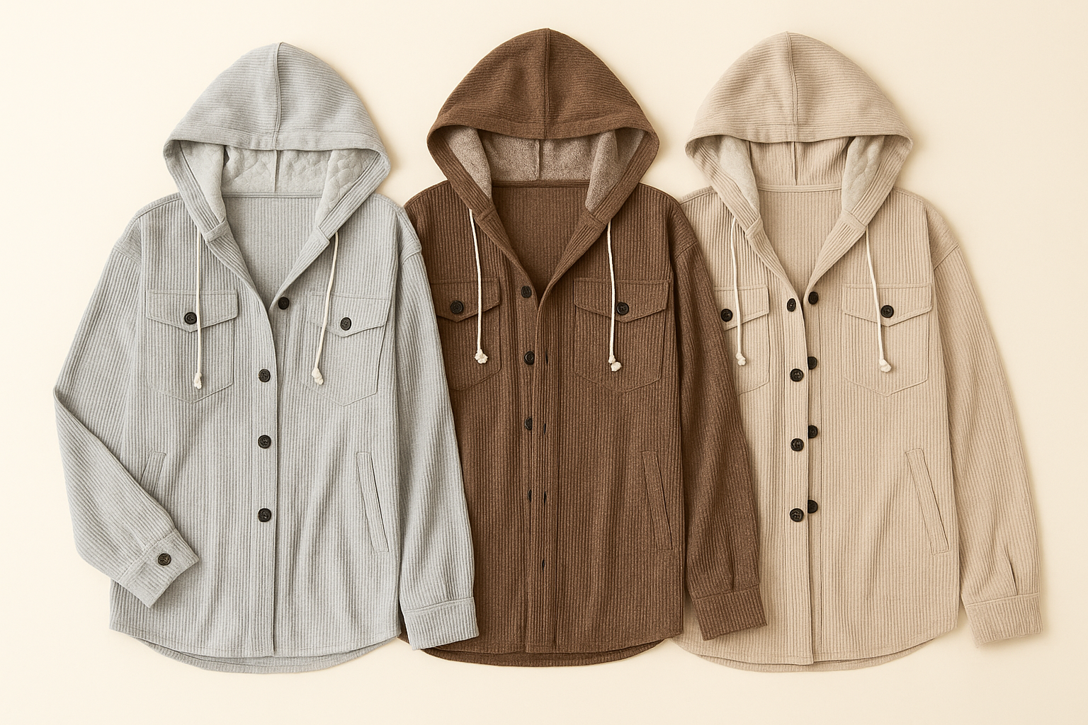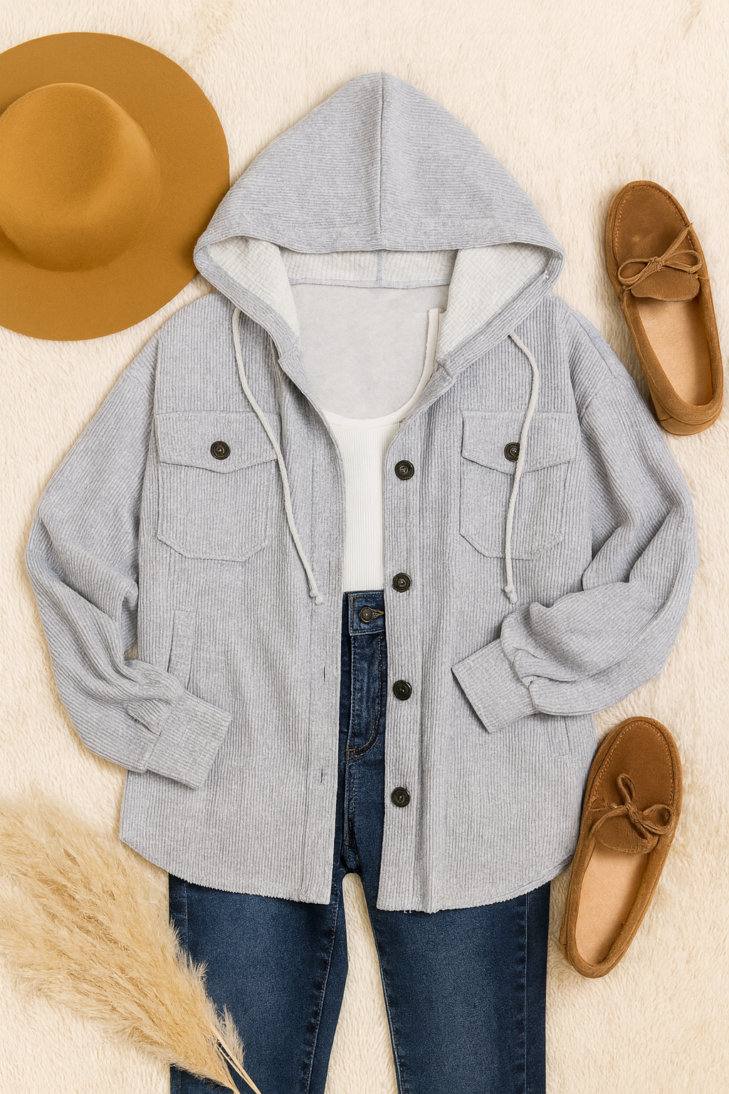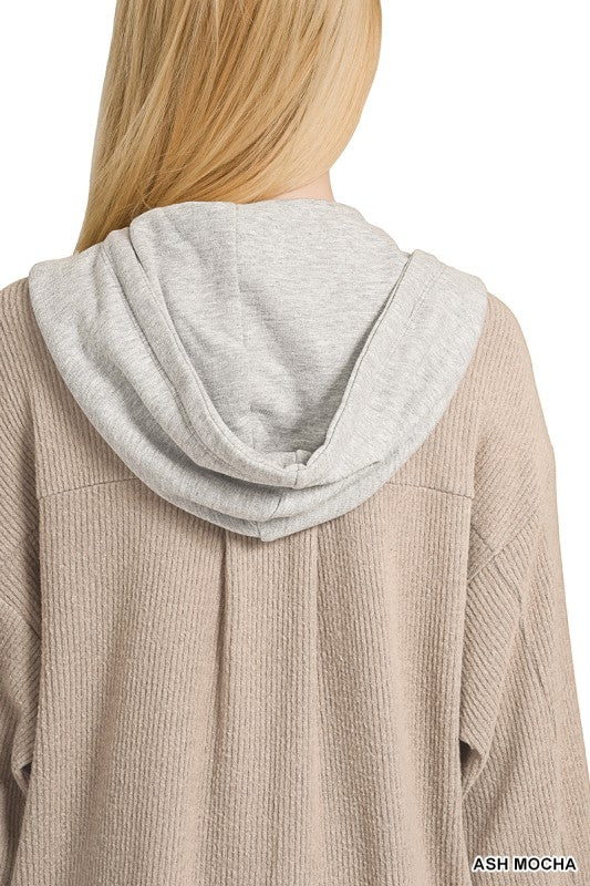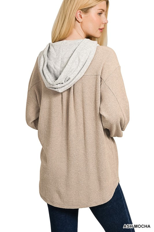 BRUSHED RIB HOODED BUTTON DOWN SHACKET