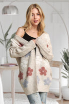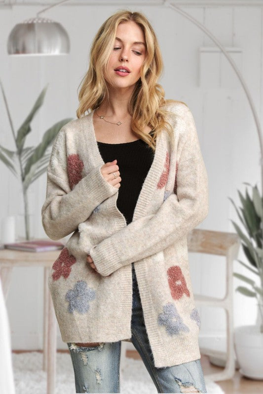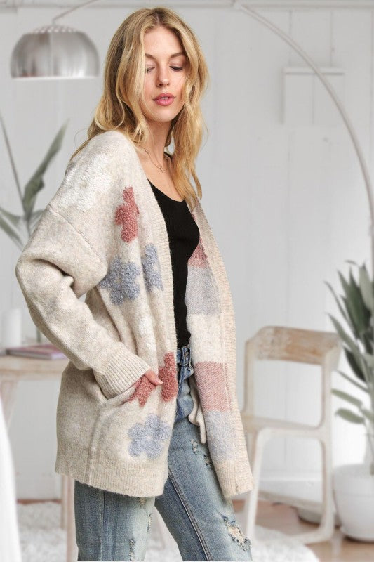 PUFF FLOWER TWO TONE SWEATER CARDIGAN